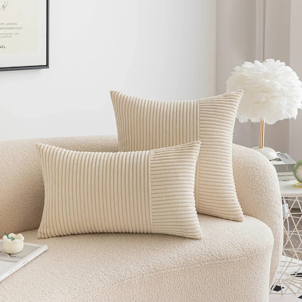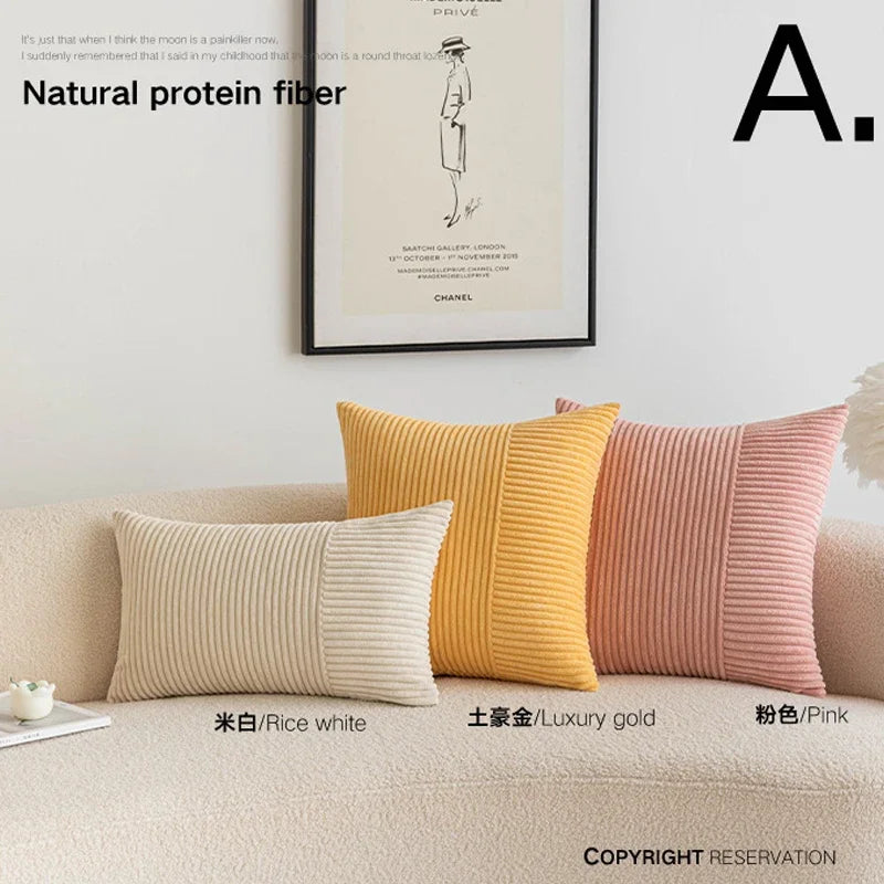 Capa de almofada listrada de veludo cotelê, almofadas decorativas para sofá, sala de estar, capa de almofada de retalhos, moderna, simples, capa de cintura