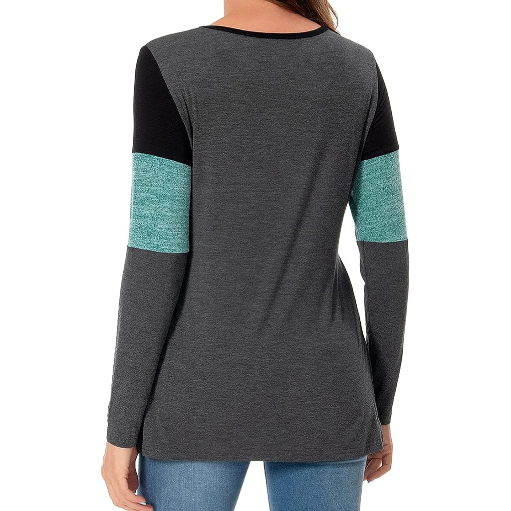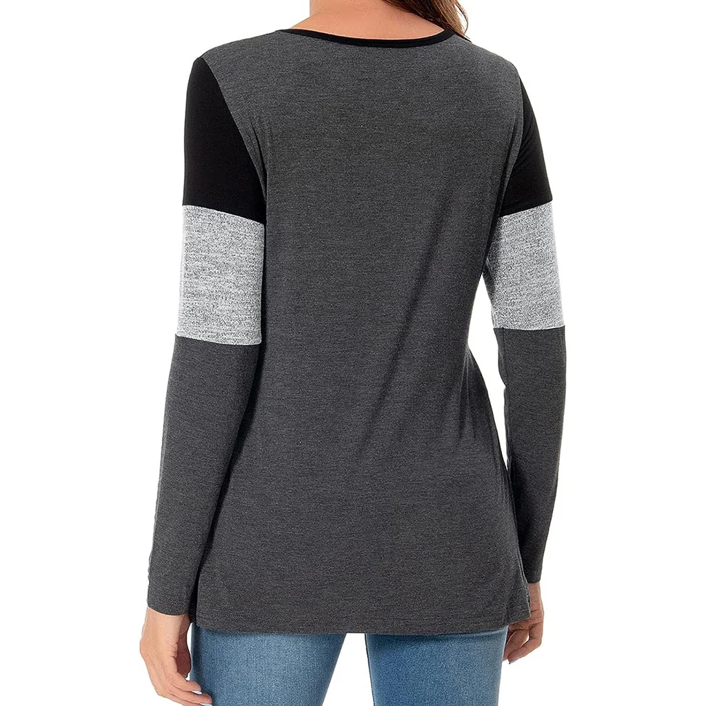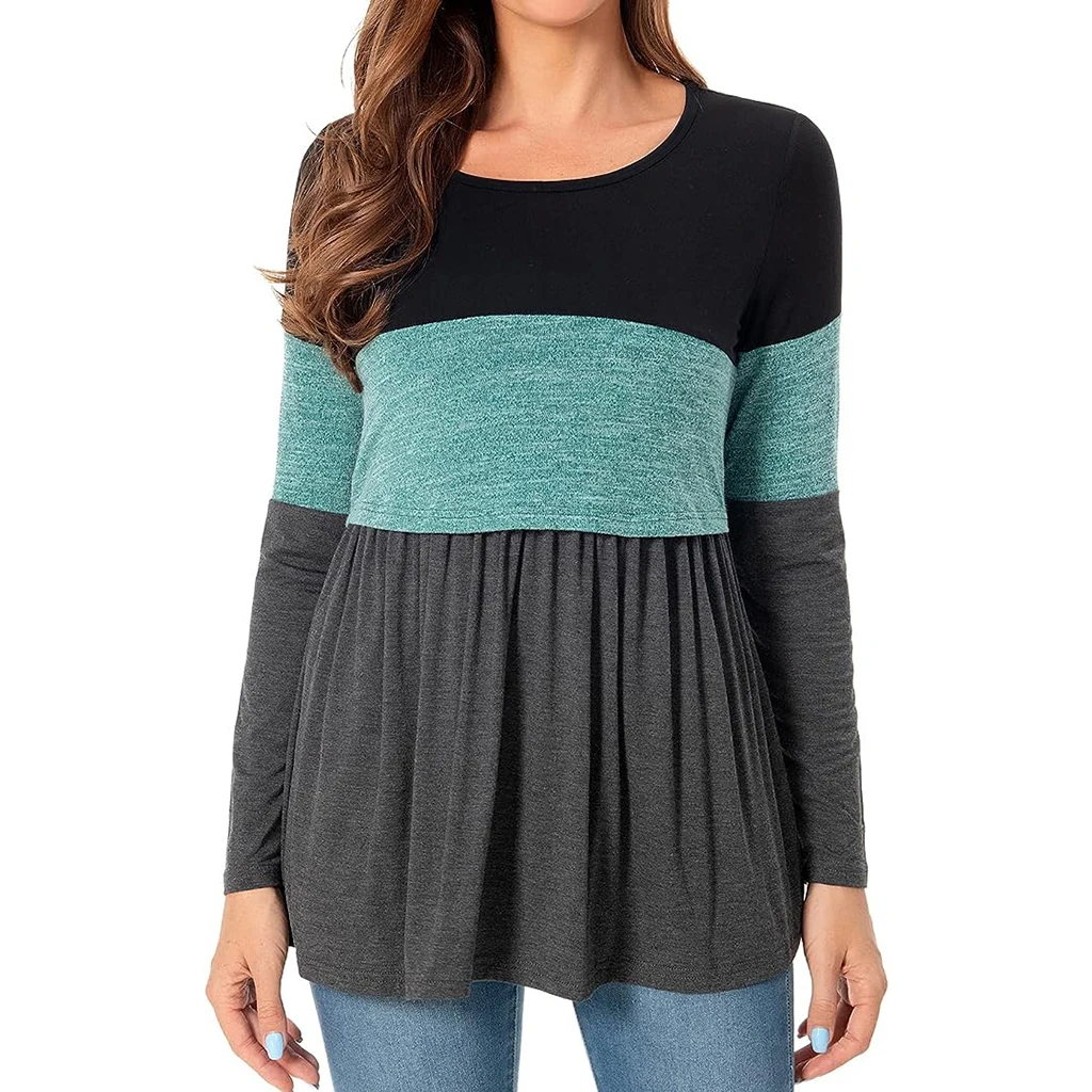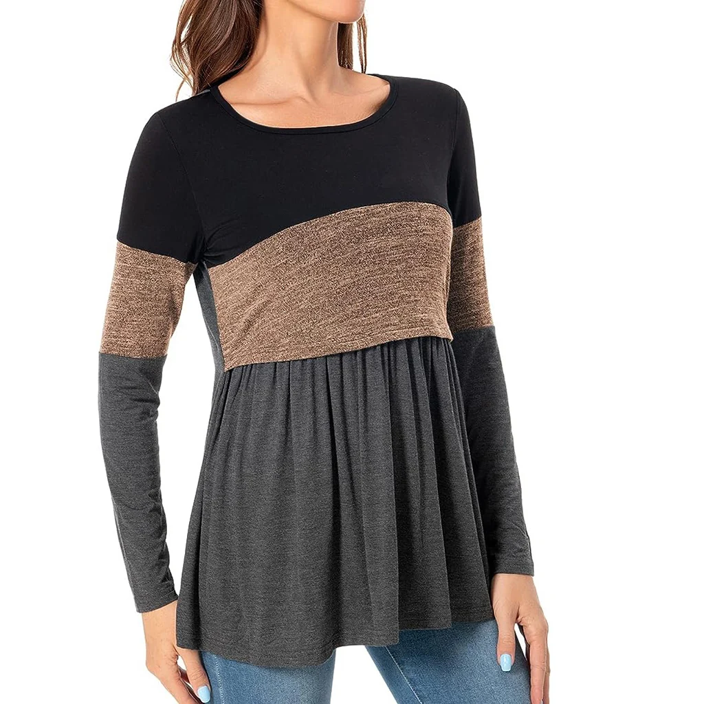 Camiseta feminina maternidade manga comprida gola redonda bloco de cores amamentada para amamentação roupas de gravidez