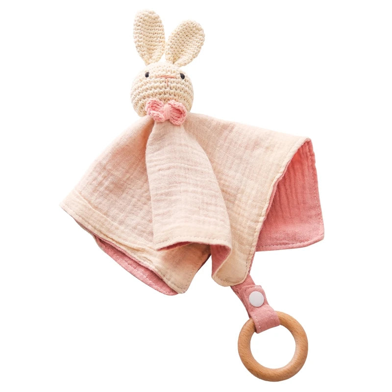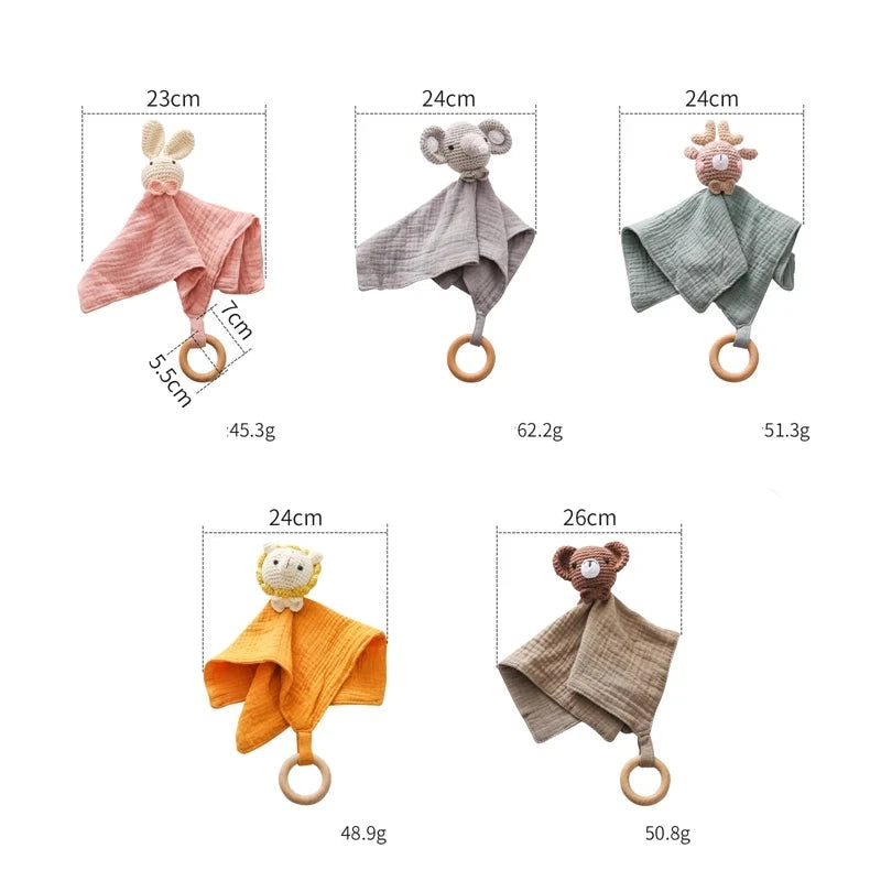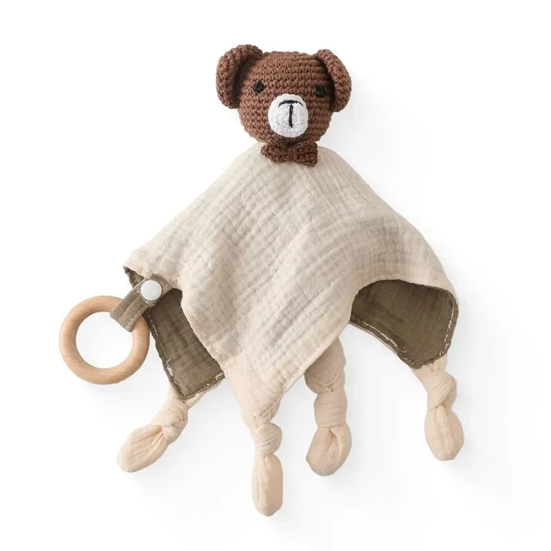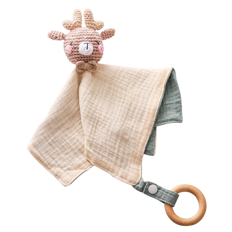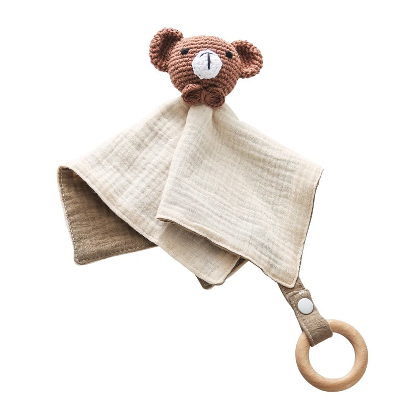 Naninha Meu aconchego com Bichinho em Crochê e Anel Mordedor de Madeira